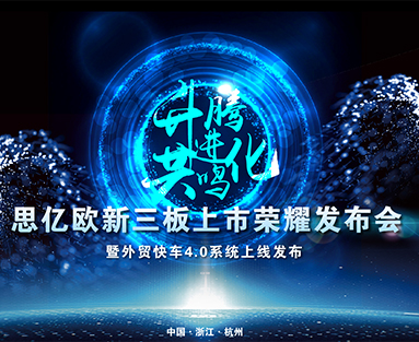 11日上午,全體與會嘉賓共同見證了以“升騰、進化、共鳴”為主題的思億歐新三板上市榮耀發布及外貿快車4.0系統發布會。此次發布會,是思億歐公司十多年發展歷程中最重要的里程碑,標志著公司站到了歷史性的新高點,也是思億歐再出發的新起點。